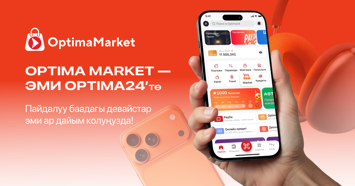 Оптима Банк өзүнүн маркетплейси — Optima Market’ти ишке киргизүү менен электрондук соода рыногуна чыккандыгын жарыялайт. Эми түп нуска техникаларды сатып алуу Optima24 тиркемесинде кардарлардын каржылык экосистемасынын ажырагыс бөлүгү болуп калды.