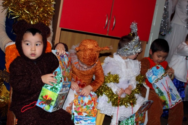 Воспитанники Беловодского дома-интерната получили помимо сладких подарков два телевизора и два DVD-проигрывателя, детки из Токмокского дома ребёнка - специальные шкафы и пеленальные столики (тут живут детки от 0 до 5 лет).